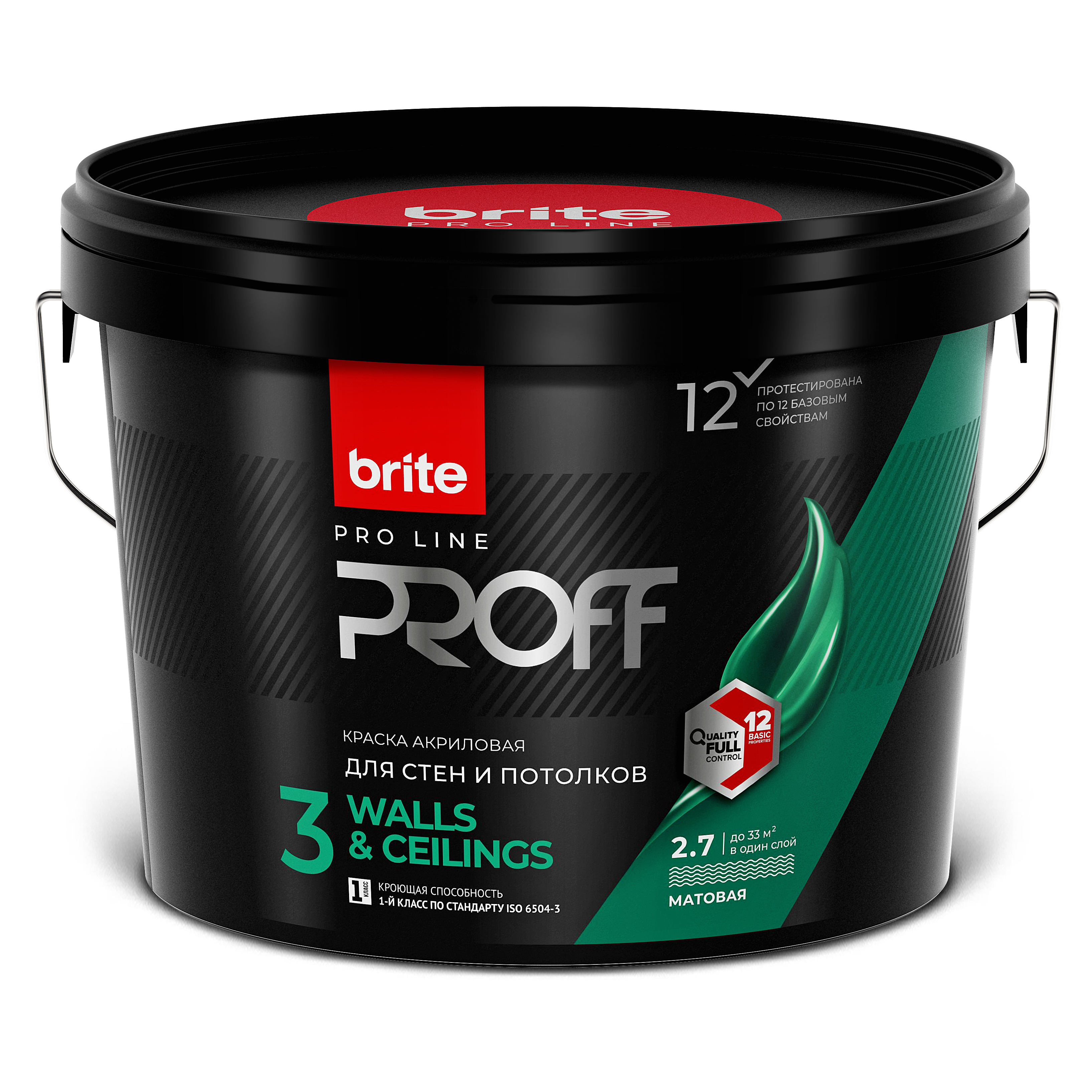 Профессиональная акриловая краска Brite Professional для стен потолков образует супербелое матовое покрытие, устойчивое к сухой и легкой влажной уборке. Краска имеет 1- й класс по кроющей способности при расходе 7-11 м²/л (в зависимости от контрастности подложки) и 2 -й класс по стойкости к влажному истиранию по стандарту DIN EN 13300 .